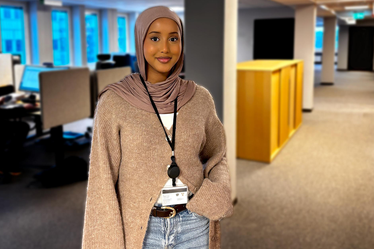 Farah är systemutvecklare och trainee i ett team som hanterar utveckling av it-system för moms och punktskatter på Skatteverket. Hon blev nyligen utlånad till systermyndigheten Valmyndigheten för att hjälpa till i deras digitaliseringsarbete.