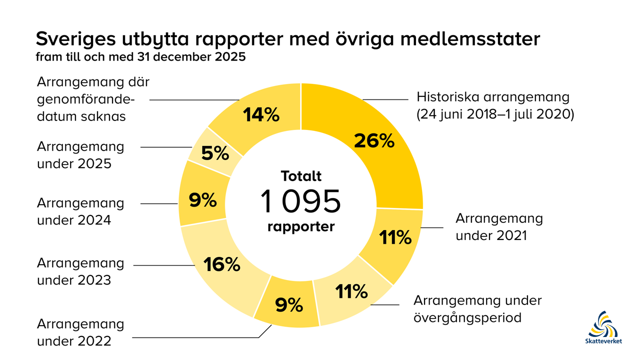 Fram till den 31 december 2025 utbytte Skatteverket 1 095 rapporter med övriga medlemsstater.